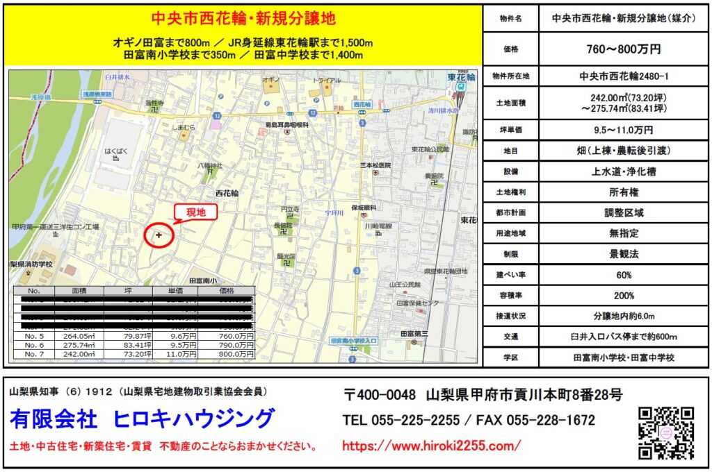 【中央市西花輪】新規分譲地・全7区画